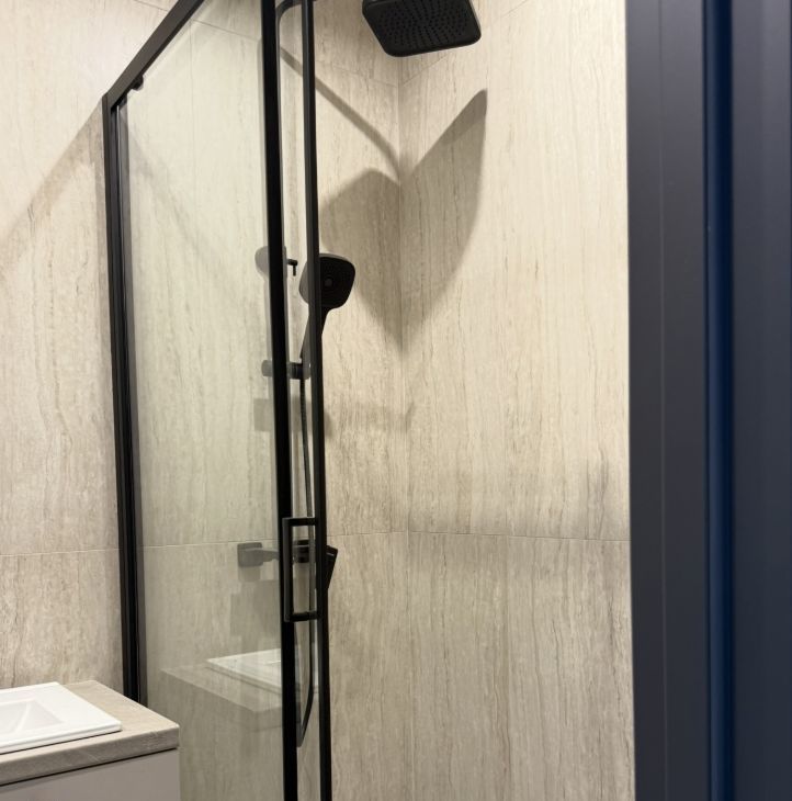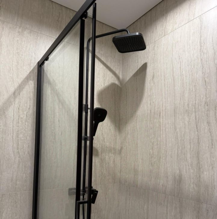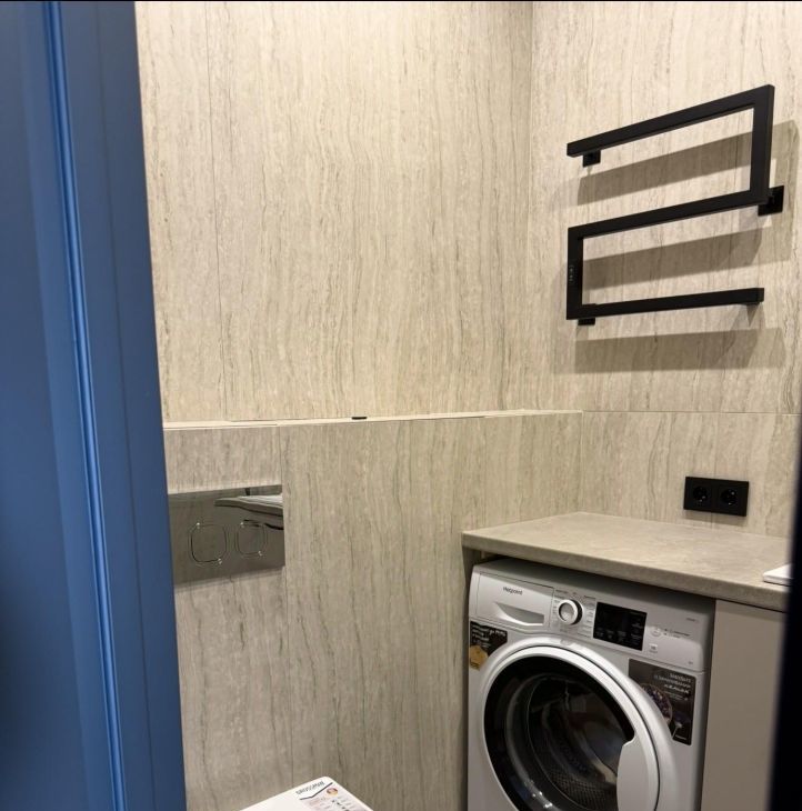 Что есть: встроенный холодильник, СВЧ, стиральная машина, ТВ. Душевая комната отделана травертином из итальянского керамогранита.