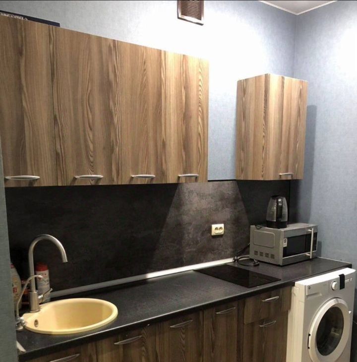 В квартире выполнен аккуратный ремонт, установлен кухонный гарнитур, есть вся необходимая техника (стиральная машина, варочная панель, микроволновая печь). Так же установлена сплит-система, хорошее освещение (точечные светильники).